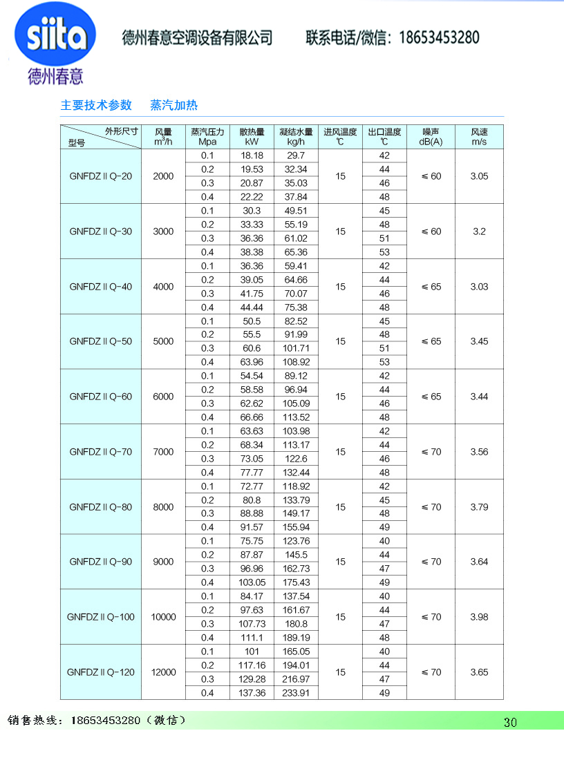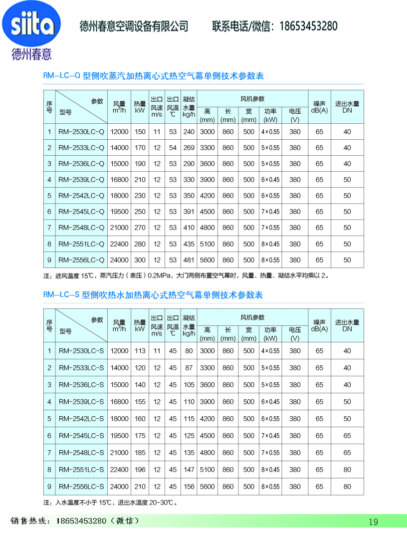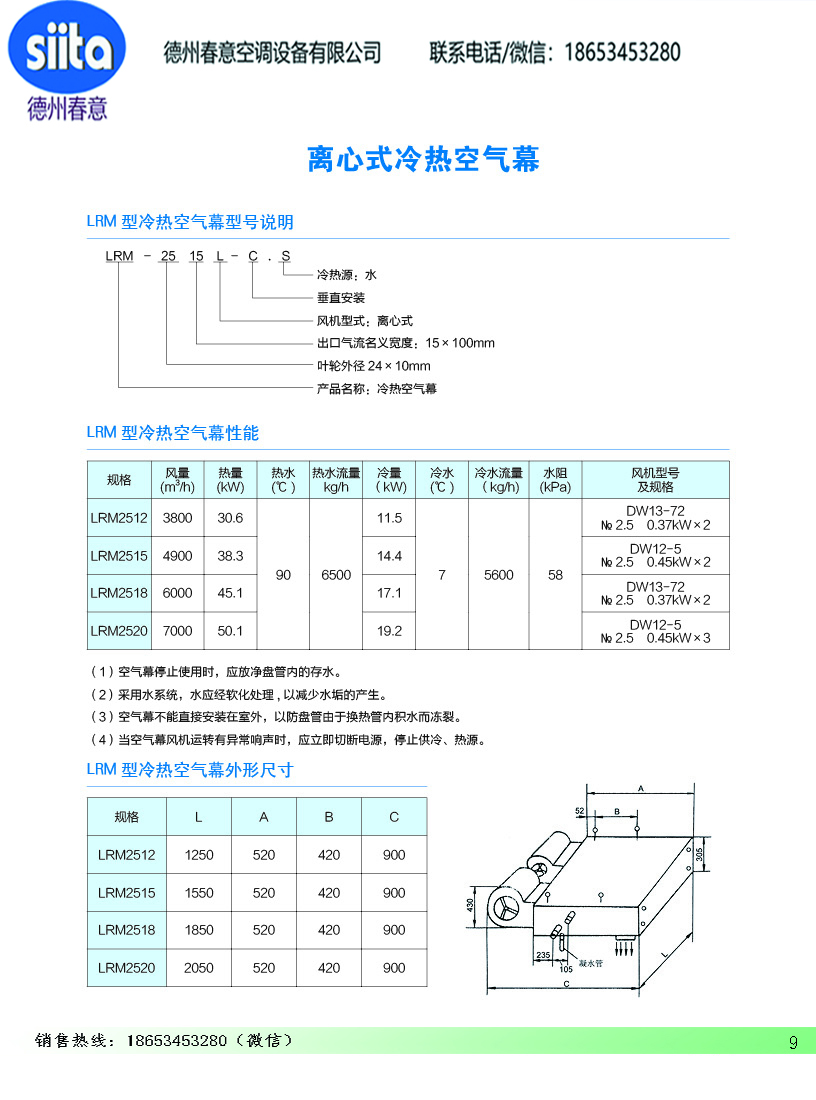 风幕机暖风机参数样本