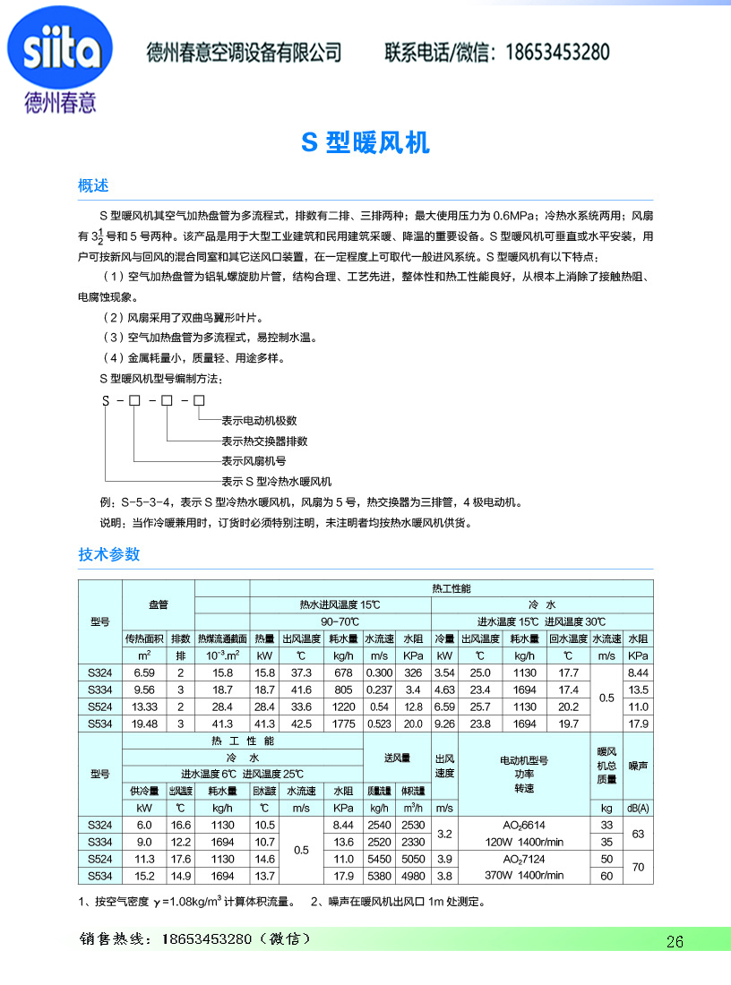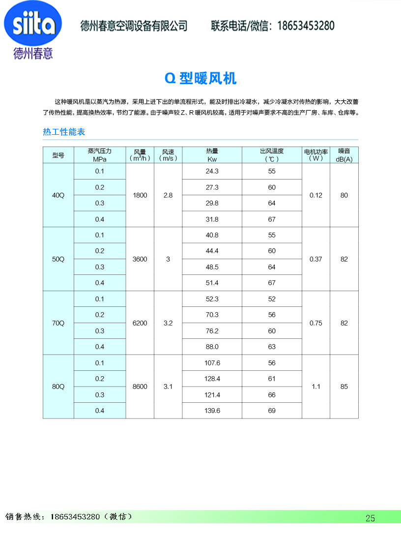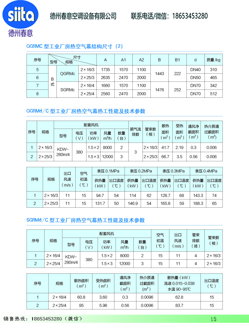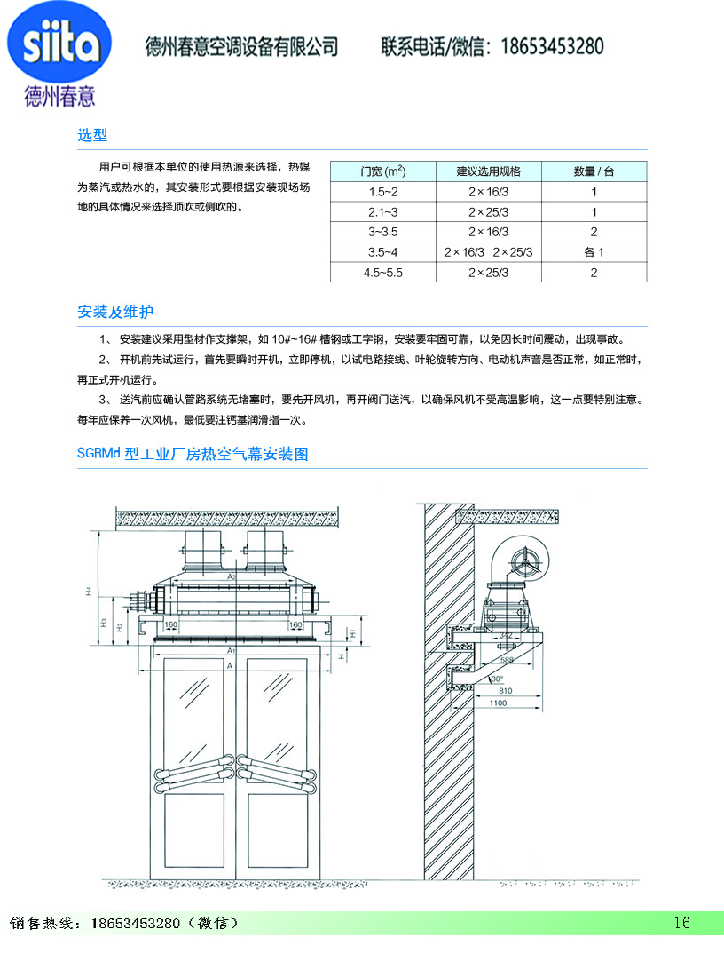 风幕机暖风机参数样本