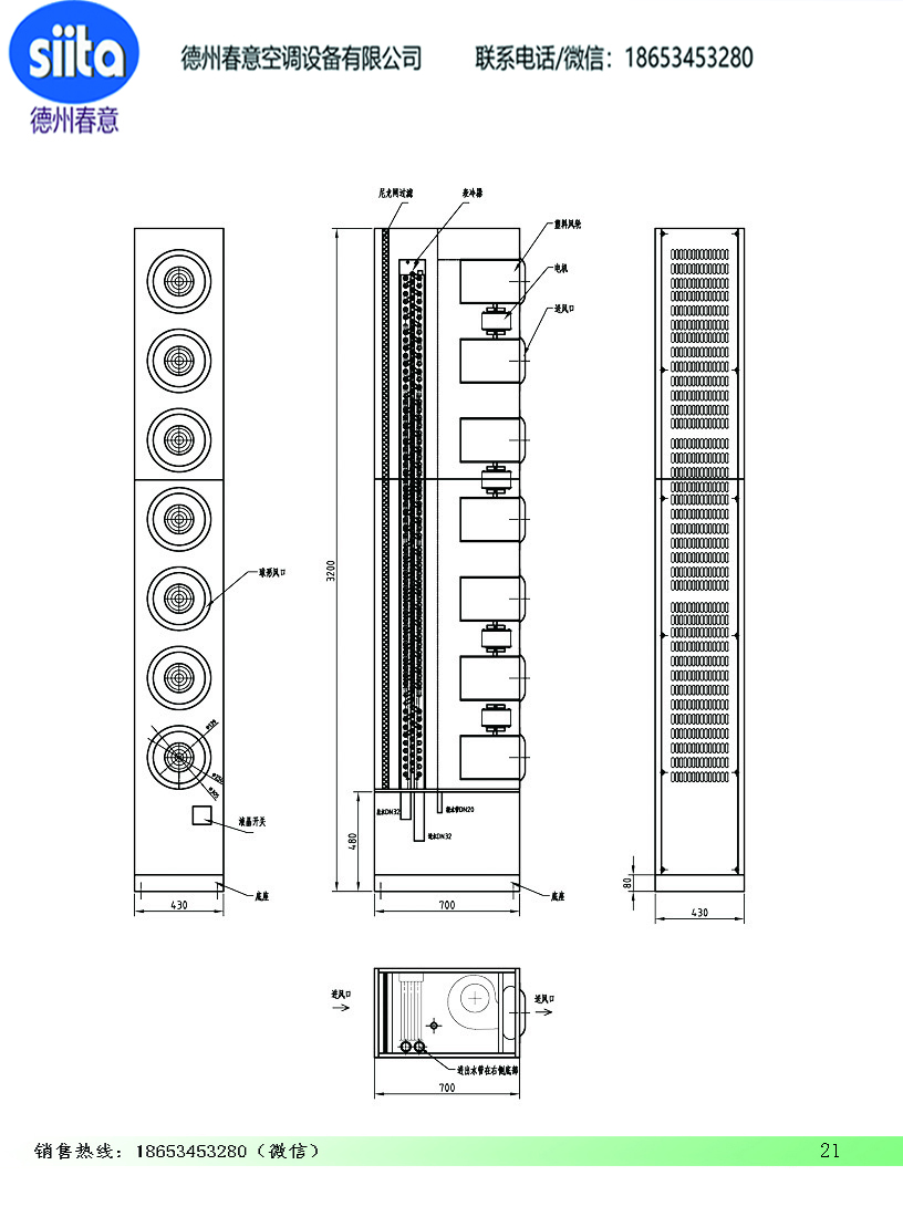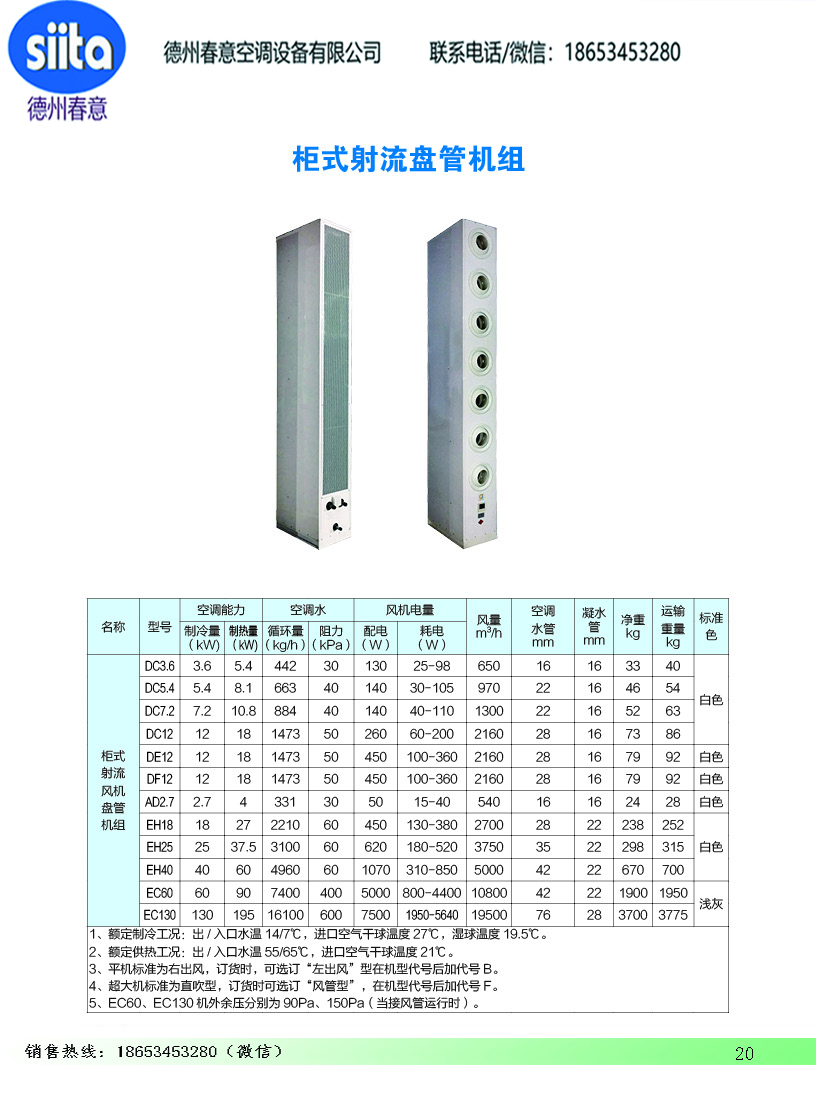 柜式射流盘管机组参数尺寸