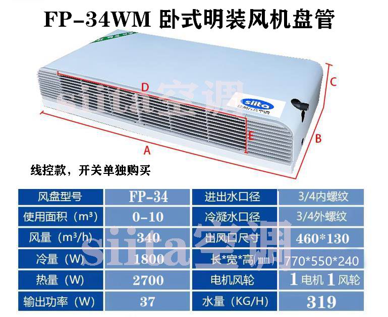 安装方式:“卧式” 指设备水平安装,通常贴紧天花板或吊挂在房间上部。“明装” 同样意味着其机身、进出水管、冷凝水管及电源线均明敷在室内可见位置,无需吊顶包裹。