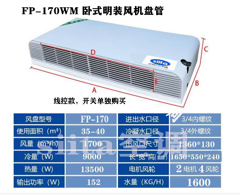 江西普通款卧式明装风机盘管型号,参数选型表格